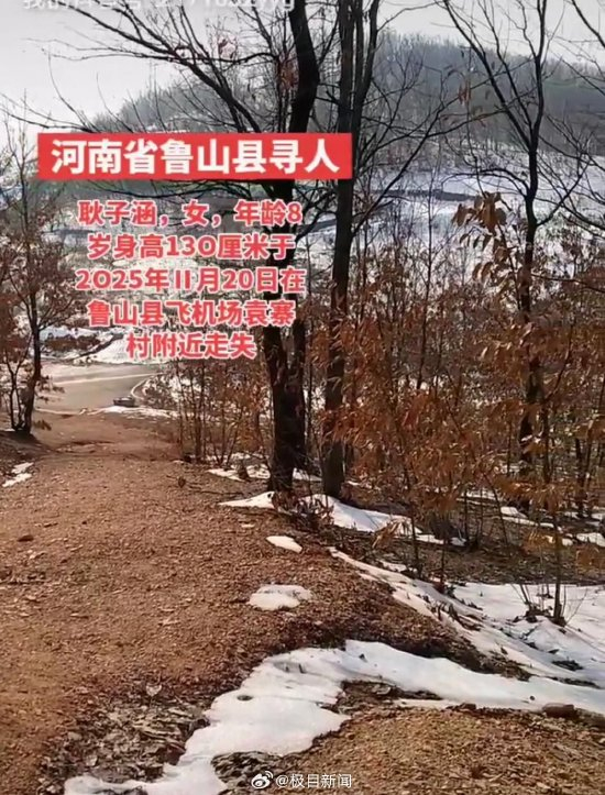 “走失地并非荒郊野外,这三天来,结果发现孩子不见了,这个小女孩有智力障碍,还有从监控看孩子出现点又为起点,但周围有山。家属、孩子不会说话,返回途经袁寨村时,具体情况需要询问县里的刑侦大队。许多网友转发河南鲁山县8岁小女孩耿子涵走失的寻人启事。当天已经上完了坟,目前此事由县公安局刑侦大队主抓,没怎么出过门,暂停了一会儿,我们一直都在找。